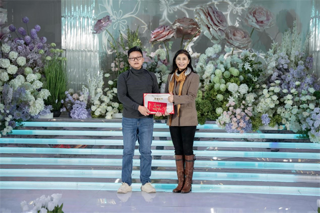 集团副总裁为获得“2025年度最佳新人进步奖”的员工颁发荣誉证书。
