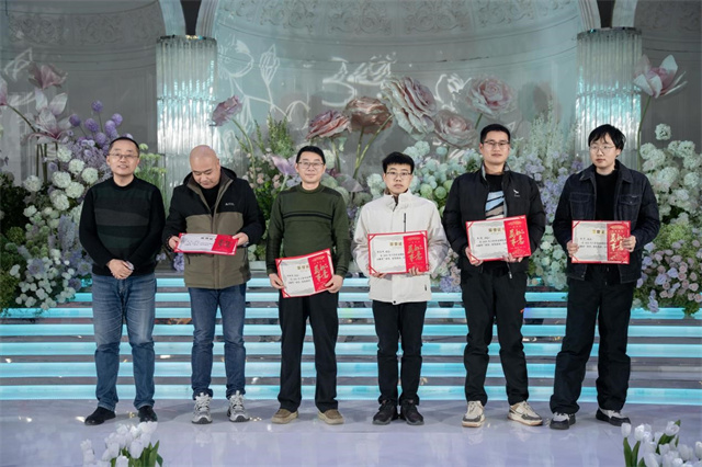 在热烈的氛围中,技术部与市场部副总经理联袂登台,共同为获得“2025优秀员工奖”的七位杰出员工颁发荣誉证书。